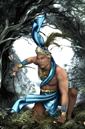 Odé grande caçador entrou na mata com seu filho, Logunedé, ensinando-lhe a arte de caçar e manejar o arco e a flecha.