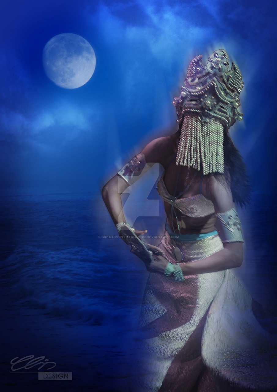 Esta Yemanjá vive no meio do oceano no lugar onde se encontram as sete correntes oceânicas.